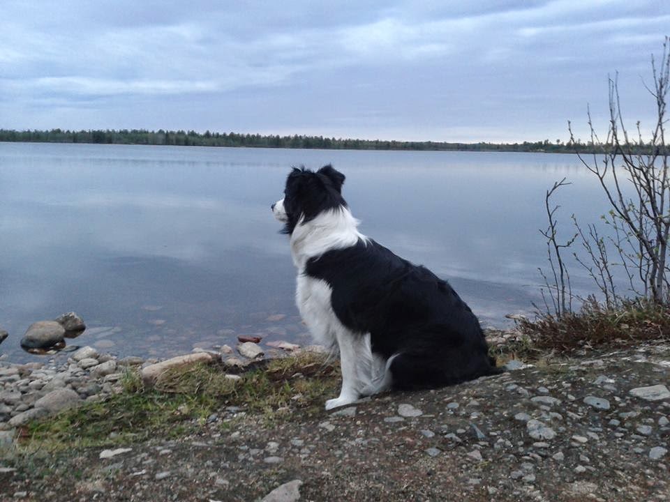 Sunnuntaina lähdimme kokeilemaan kakkosluokkaa. Kisma oli selvästi väsynyt,kaksi yötä autossa matkustamista ja koepäivä takana. Tottis oli hmmmm.....sinnepäin, mutta 70pistettä,joten lähdimme maastoon. Esineruutu oli tänään helpompi (ohjaajan silmiin) Kisma merkkasi oikean takakulman esineen, nosti keskeltä yhden, merkkasi vasemman takakulman esineen ja se oli siinä Vieraat esineet treeniin :) Jäljelle arvoin itselleni sitten sen vaaraan nousevan jäljen. Jana oli huono,tuulesta takajälki josta sitten pääsimme matkaan. Taas näytti että koira vain käveleskelee siellä nenä vähän maasta ylhäällä, mutta eka keppi löytyi jonkin matkan päästä. Jatkettiin matkaa, oli jo ihan varma että ei olla jäljellä, mutta kakkoskeppi tuli vastaan. Siinä vaiheessa oltiin jo ylhäällä vaarassa, ja tuuli kävi voimakkaasti. Kisma lähti jatkamaan, en tiedä oliko minun epävarmuus vaiko oliko koira oikeasti hukannut tuulessa jäljen, lopulta päädyimme vanhojen poronluiden luokse,mitä Kisma jäi haistelemaan. Palattiin takaisin, mutta maasto oli niin samanlaista,että ei mitään käsitystä missä oli kuljettu. Käveleskeltiin siellä täällä josko jälki vielä tarttuisi nenään, mutta ei. Näin kahdella kepillä pois maastosta. Hiukka harmitti, koulari oli jo niin lähellä, mutta tätähän tämä on :)